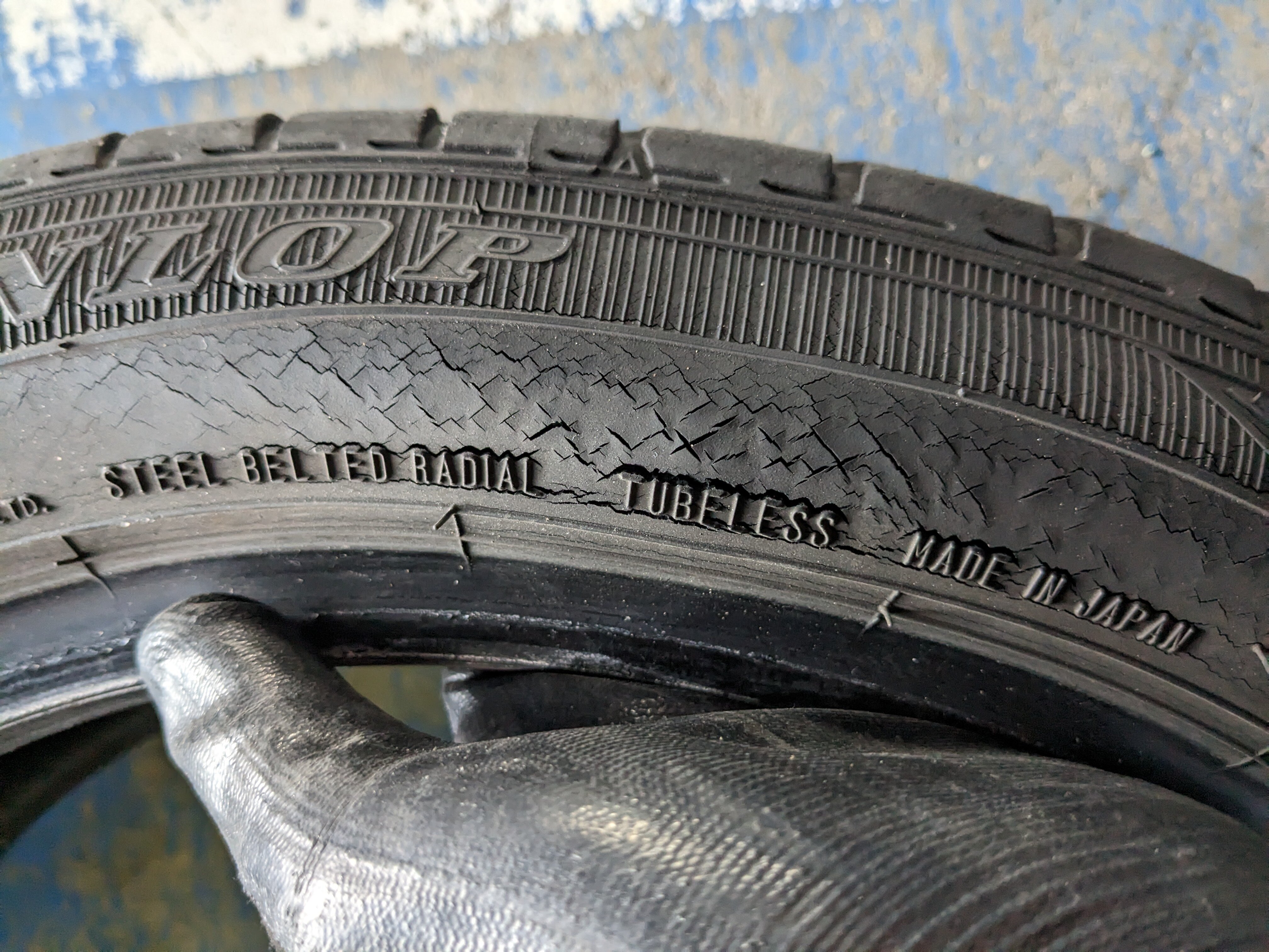 最近はタイヤが減るより先に、ヒビ割れ等の劣化にて交換に至るケースが増えてきています。![]()