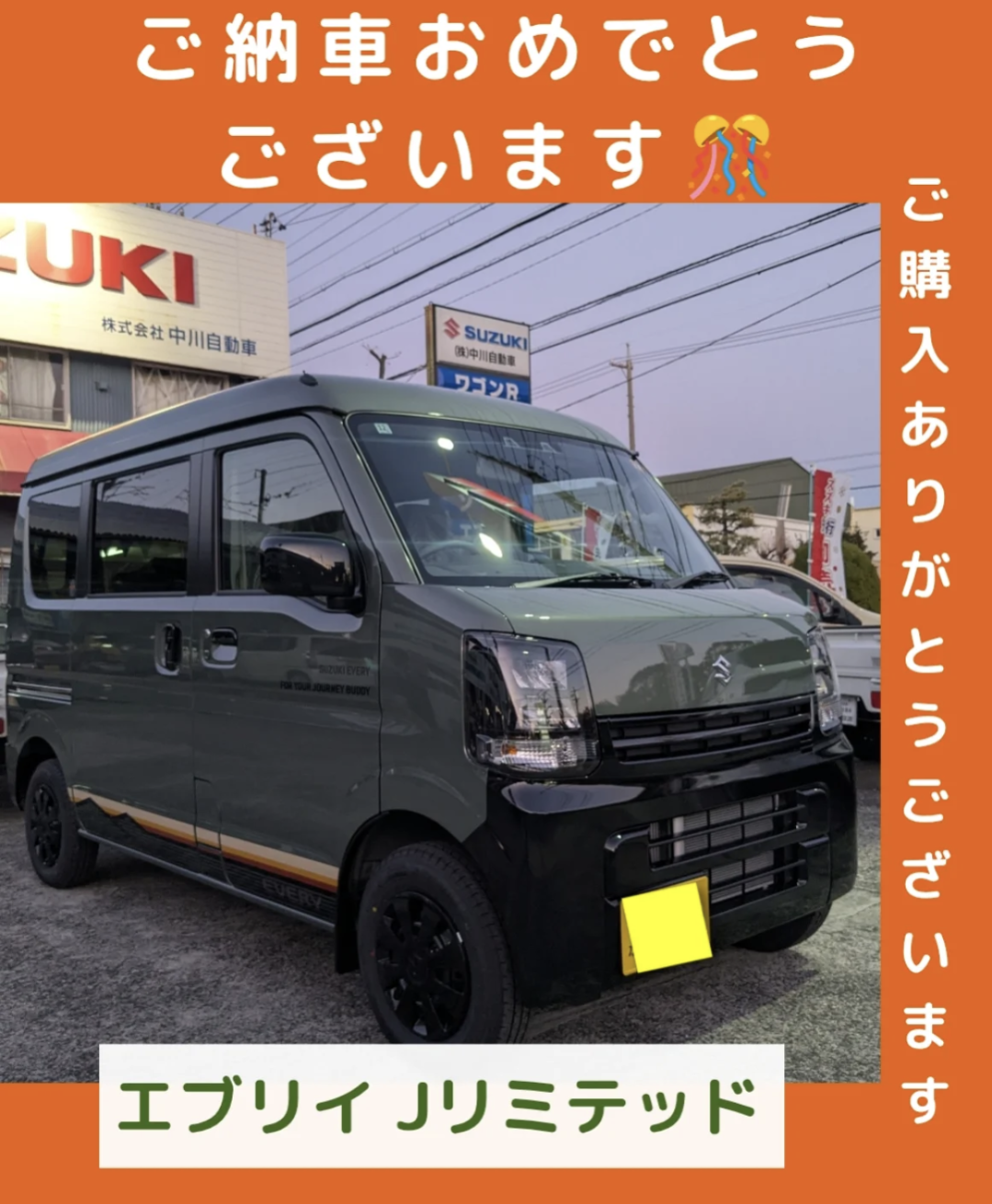 2026/01/20 エブリイ Jリミテッド 納車 納車情報 遅ればせながら、昨年末に納車させていただいた新車です! 【エブリイ Jリミテッド】 ノーマルなのにカスタムしたかのようなこのデザイン! かっこいいですね~。 I様、当社にてご購入ありがとうございました! これから末永くお付き合いをよろしくお願いいたします。